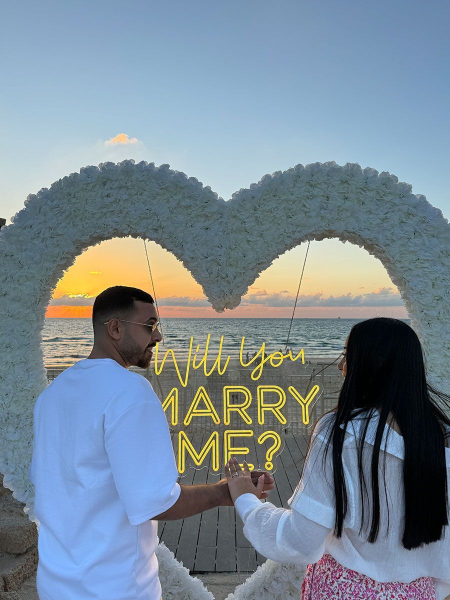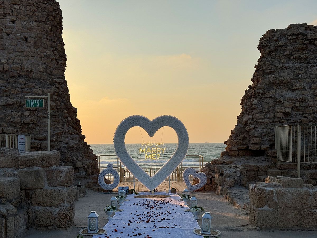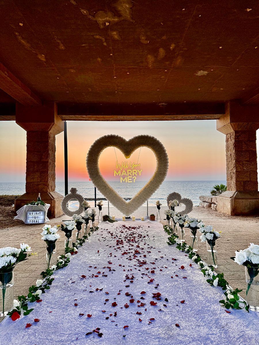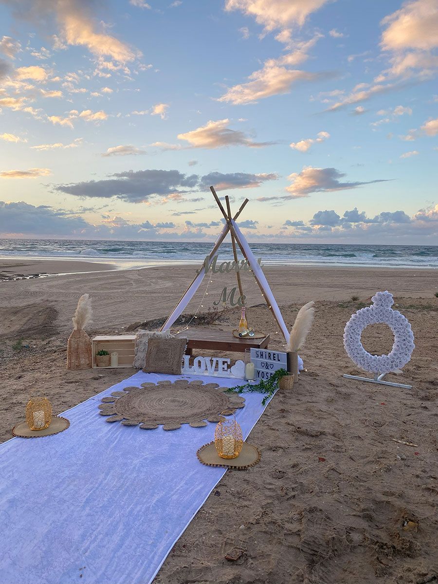 הים מביא איתו תחושה של חופש ושלווה, מקום שבו אפשר להרגיש קרובים לטבע ולהיות מוקפים ברומנטיקה טבעית. האווירה הפתוחה והמרחב האינסופי של הים מעניקים להצעה רגש אינטימי ומיוחד – מקום שבו האופק הרחוק מסמל את העתיד המשותף, והגלים השקטים מעצימים את הרגעים האישיים של הזוג. בנוסף, בין אם מדובר בשעות הבוקר עם קרני שמש עדינות, שקיעה רומנטית או לילה עם שמיים זרועי כוכבים – הים מציע תפאורה טבעית שאין לה תחליף.