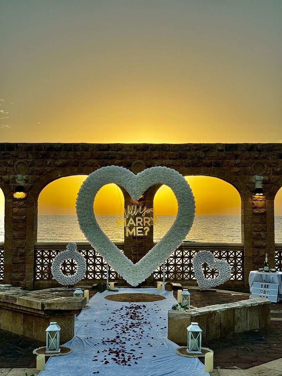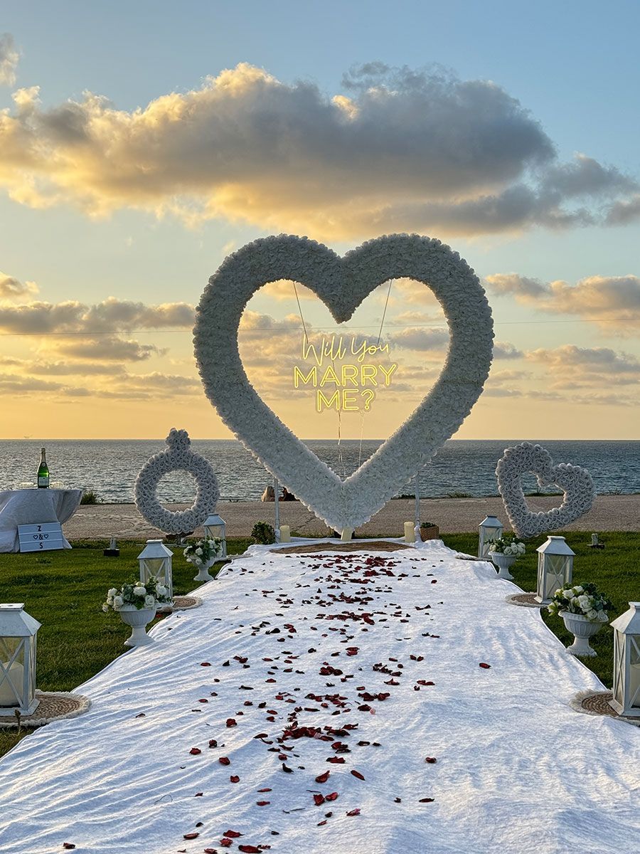 הצעת נישואין בים דורשת תכנון מוקפד כדי להבטיח חוויה מהנה ונטולת דאגות. התהליך מתחיל בלמידה של החלום שלכם ובתכנון פרטי ההצעה, החל מבחירת החוף המתאים ועד לפרטים הקטנים ביותר שיהפכו את הרגע הזה לשלכם. אנו, באדם וחווה הפקות, דואגים לתכנן כל פרט ולוודא שהכול מוכן בדיוק כפי שתמיד דמיינתם.